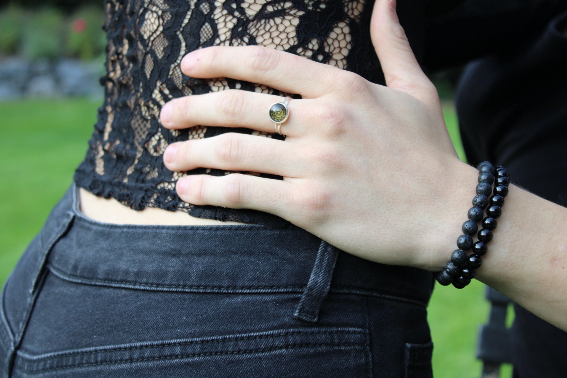 Handcrafted Seashell & Glass Adjustable Ring