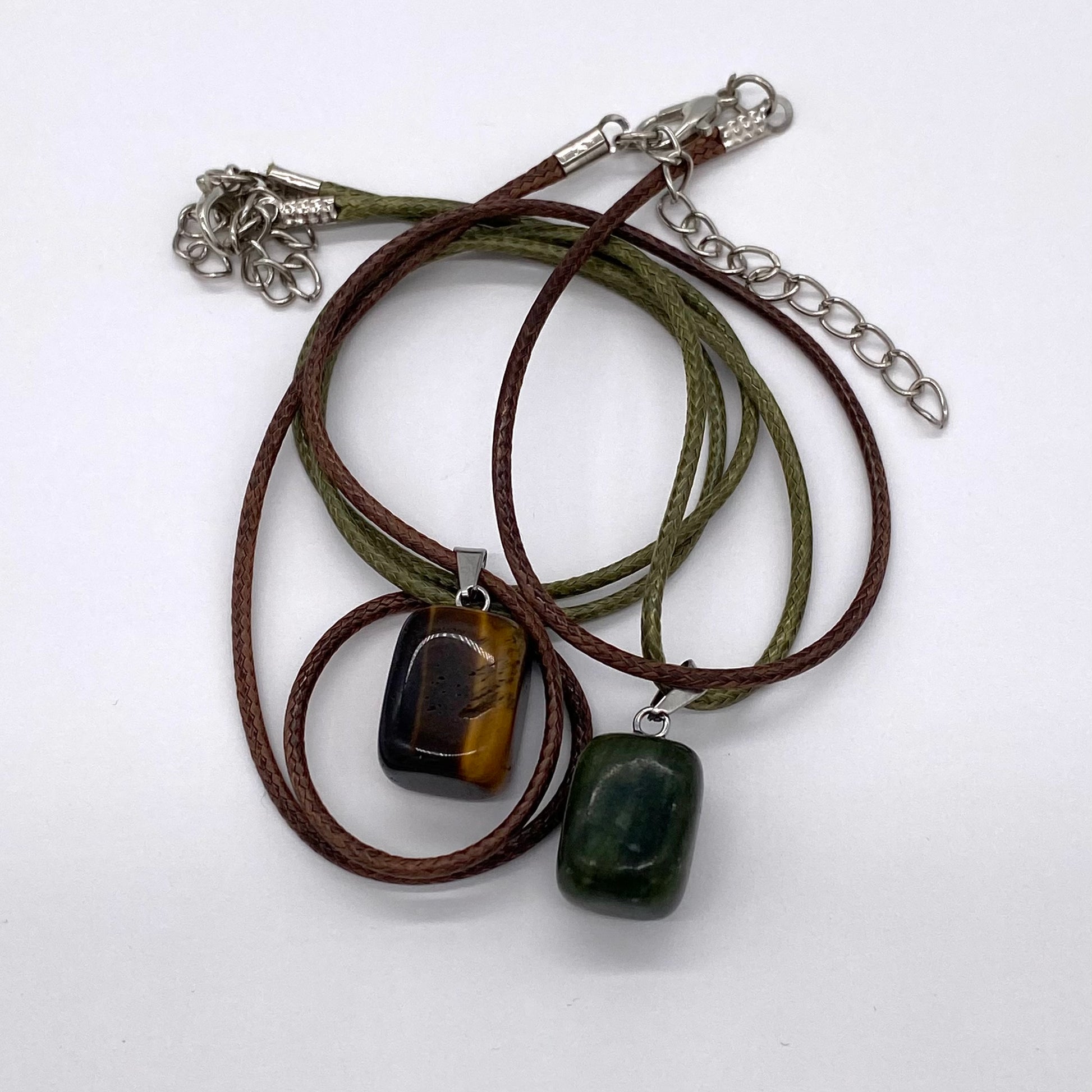 Both stones are polished to highlight their natural patterns and are strung on a durable leather cord, finished with a secure metal clasp. Designed for daily wear, they bring an earthy, grounding energy to your look while remaining minimalist and stylish.